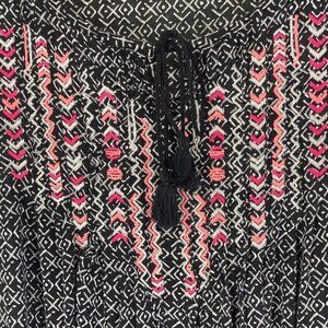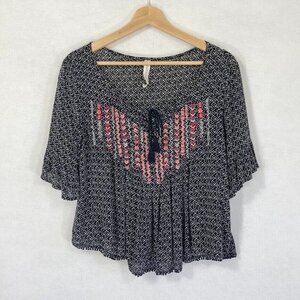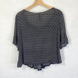 Aeropostale Bell Sleeve Boho Peasant Black And White Geometric Print Top