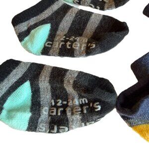 12-24M Baby Boy cozy socks with gripper bottoms - set of 6 total pairs
