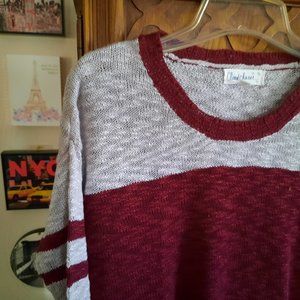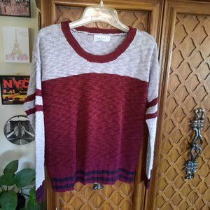 3/$15 Cloud Chaser Crew Neck Varsity Striped Sweater - Burgundy, S