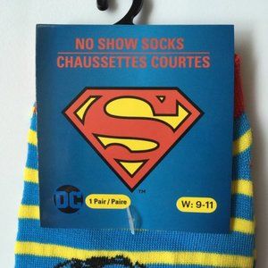 DC Comics Superman red, blue and yellow striped no show socks. Fits womens sock sizes 9-11 (shoe sizes 7-10). Fun superhero comic book movie character socks. Would be awesome for the 4th of July. New! Please see photos for details.