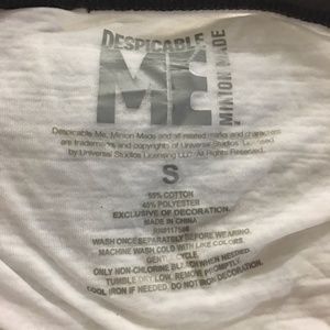 Adorable burn out T from Despicable Me movie. Has a cute pocket with embroidery and an awesome, flattering longer back cut. Size Small. Great Used condition.