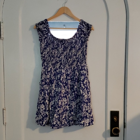 Blue and white flower dress with stretchy top and flowy bottom. With pockets, worn once