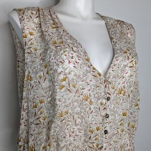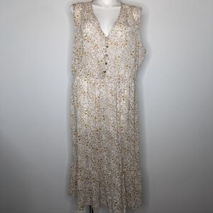 ✨3/$15 Emma & Michelle tan yellow floral sheer v neck summer dress 3X