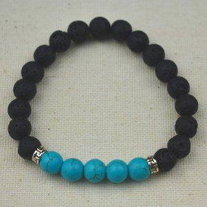 • Turquoise, Black Lava Rocks, with Silver Accent