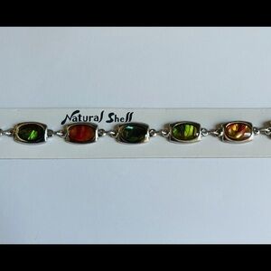 BEAUTIFUL NATURAL SHELL OVAL IN SQUARE BRACELET MADE UP OF A VARIETY OF COLORS.