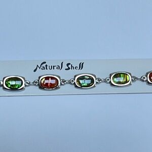 BEAUTIFUL NATURAL SHELL OVAL IN SQUARE BRACELET MADE UP OF A VARIETY OF COLORS.