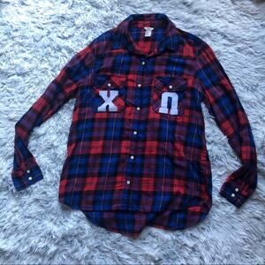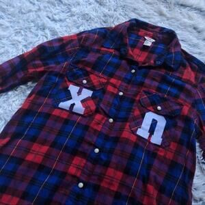 3/$15 🌻 Forever 21 Twilightcore grunge plaid red & blue button up shirt