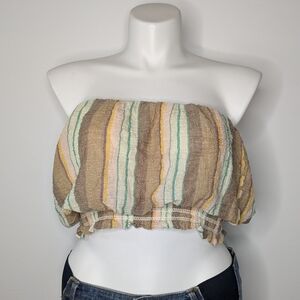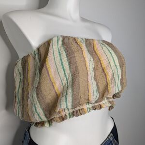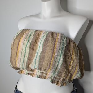 Free People tan striped cotton gauze tube top XL/XXL. Good condition. Brand and size tag have been removed, basing size on measurements and style.