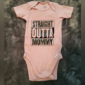 MODERN MOMENTS by GERBER: cute mauve colored short sleeve onesie with black "Straight Outta Mommy" logo on front. 2 snap crotch closure