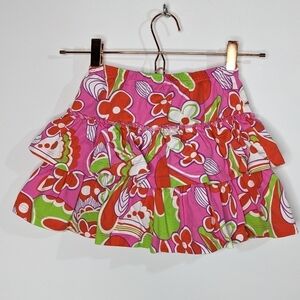 ✨3/$15 Hanna Andersson pink green red layered ruffle skirt 6-7