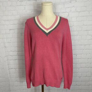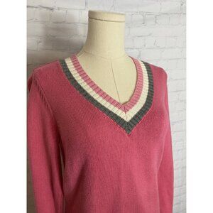 ⭐ 3/$15 Izod Pink White Grey Stripe V-Neck Knit Sweater S