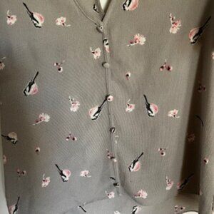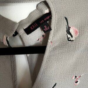Kaii Los Angeles Bird Floral Print Top Decorative Front Buttons Women's S