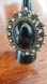 Faux Onyx Oval Cabochon Rhinestones Antiqued Gold Brass Adjustable GUC
