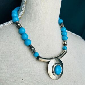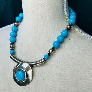 3/$15 Large Statement Silver and Turquoise 80’s Necklace
