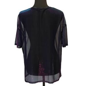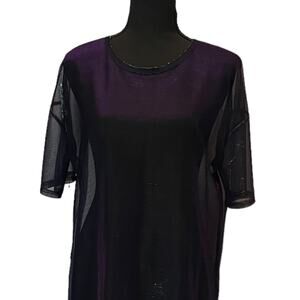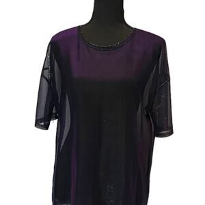 3/$15 Metallic Women's Crew Neck Sheer Top Blouse Large