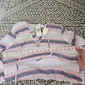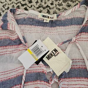 3/$15 Miken Red White & Blue Striped Hooded Swim Coverup Dress Size Medium