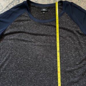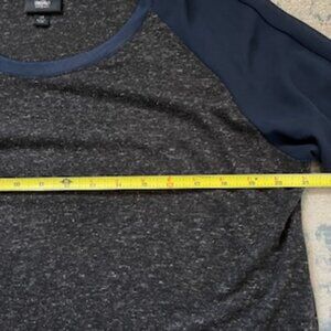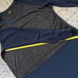 🧡 3/15 Mossimo Linen Blend Semi Sheer Gray Navy Long Sleeve Top Women's L/G