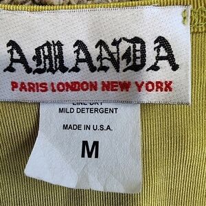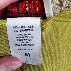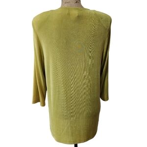 New with tags, Amanda long sleeve chartreuse (yellowish green) colored silky top. Bottom left has one of two double stiched rows missing thred approx 1.5 inch. See photos.