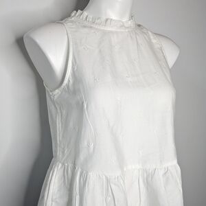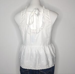 NWT Loft White Ruffle Sleeveless Cotton Tank Blouse XSP. Some small stains by one underarm from store storage (see photo)