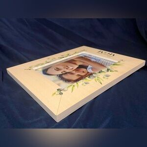 This picture frame features delicate floral accents with green leaves and stems, creating a natural and soothing border. The cream base color enhances the botanical design, offering a serene and elegant touch to any photograph.