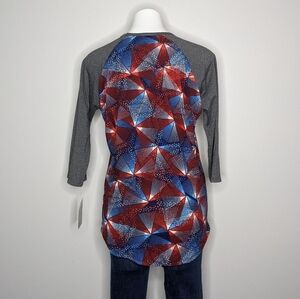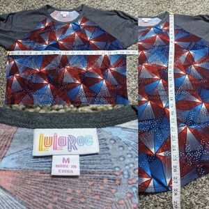 ✨3/$15 NWT LuLaRoe Randy grey red blue geometric patriotic baseball T-shirt M
