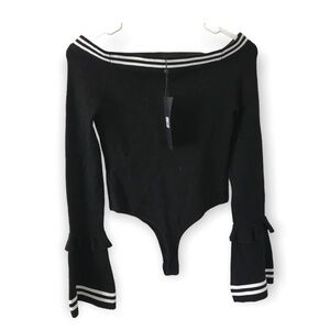 3/$15 *New* Kendall and Kylie bell sleeve black and white off shoulder bodysuit