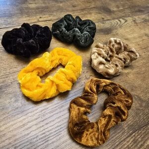 3/$15 New Velvet Scrunchies Set of 5 Black, Green, Yellow, Brown, Tan