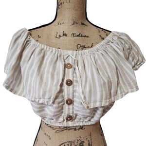 3/$15 Primark Off-the-Shoulder Beige & White Stripe Crop Top - Medium
