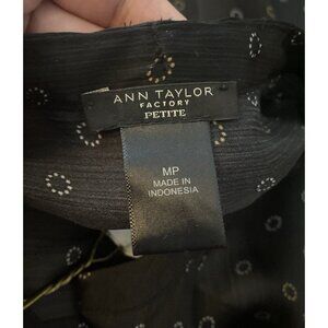 3/$15 SALE - Ann Taylor Factory Black Sheer Blouse Tunic Polka Dot Size M Petite
