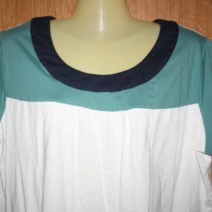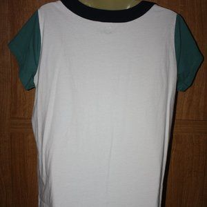 Women's vintage SJB top, size XL. Color block white with green & black. Short sleeve. Soft 100% cotton material. Good used condition, no stains or rips. Approximate measurements: