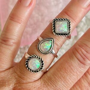 3/$15 Set of 3 Silver Faux Opal Bohemian Rings