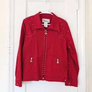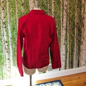 3/$15 Vintage 80s Red Jacket w Crystal Buttons, Rhinestones, & Shoulder Pads