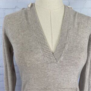 This vintage Y2K sweatshirt by Ashley features a soft tan knit with subtle pink accents, exuding early 2000s charm. Its hooded style and ribbed hemline add a practical yet nostalgic touch, while the front pouch pocket offers both functionality and a cozy aesthetic reminiscent of its era.