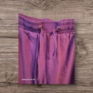 Stylish purple cropped pants with a drawstring waist. Perfect for casual wear. approximate measurements flat: waist 16, length 29, inseam 19