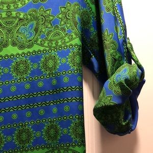 High low blue and green blouse