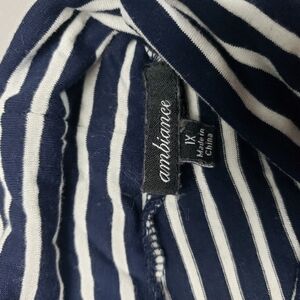 ambiance turtle neck navy blue and white long sleeve shirt women's plus size 1X