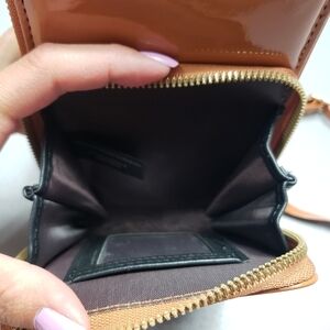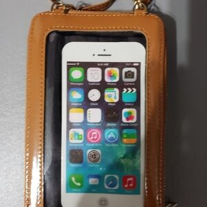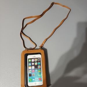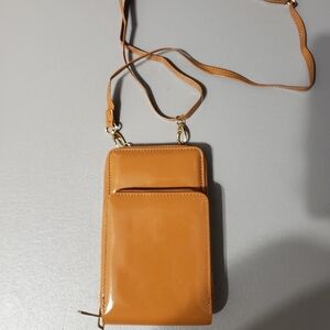 brown faux leather crossbody bag with 2 pockets and a phone pocket
