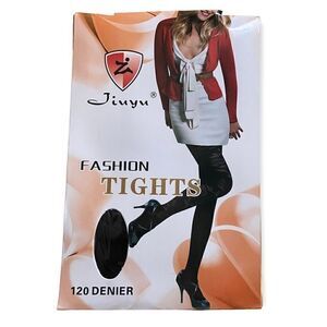 Opaque tights with a sheer floral pattern on the outside of the leg