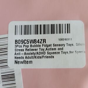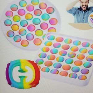 This is a 3 Piece Pop Bubble Fidget Sensory toy. It comes with a squeezer. It is new without tags. The package has never been opened.