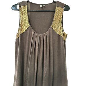 🌸3/$15🌸Dark Brown with Gold Sequin Accent Shoulders Sleeveless Blouse sz M