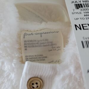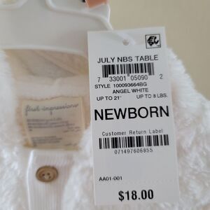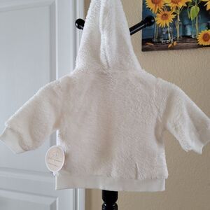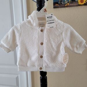 NWT. Beautiful angel white colored short sleeve jacket for newborn. Very soft and has a hood.