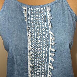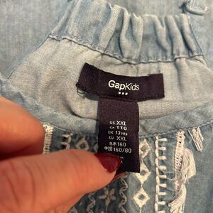 Good used condition, smoke-free. Gap kids size XXL. Denim look with embroidery on the front. Adjustable straps.