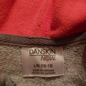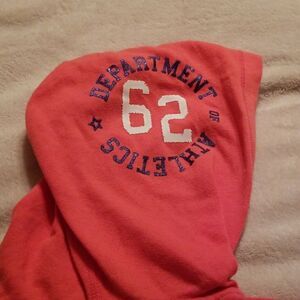 Very nice jacket with zipper and front pockets. Very soft and comfortable. It is in excellent condition.