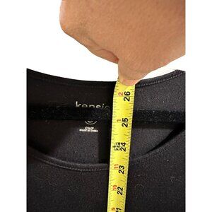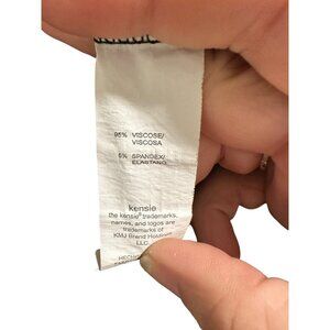 This stylish Kensie Hi-Lo Long Sleeve Rounded Neck Blouse in size S is perfect for business casual wear. Crafted from viscose and spandex, it features a black and white design, ensuring versatility.