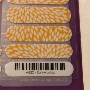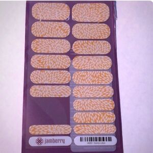 Jamberry sunny lotus. Missing 2 nail wraps. It’s a yellowish orange.
