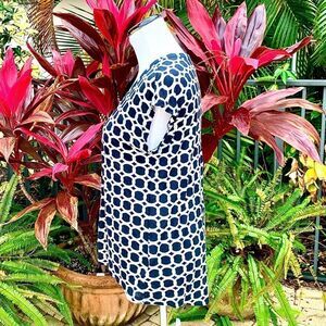 — Navy blue, beige, & gold square print tee