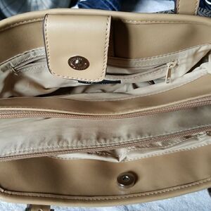 Very well made. With lots of room and plenty of pockets. There is a pen stain in one are, shown in pic above. Other than that, it's in excellent shape.