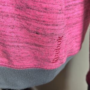 Good used condition. Other than some mild fuzzing of a fabric. See photos. Reebok size medium put hooded sweatshirt . No pockets.