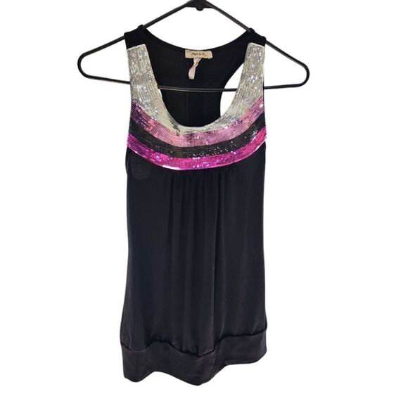Beautiful sequin tank top. Very soft fabric. The pit to pit is approximately 16.5 inches.