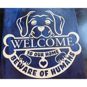 ❕3/$15❕WELCOME door sign 9.5 Square Solid wood stained blue
